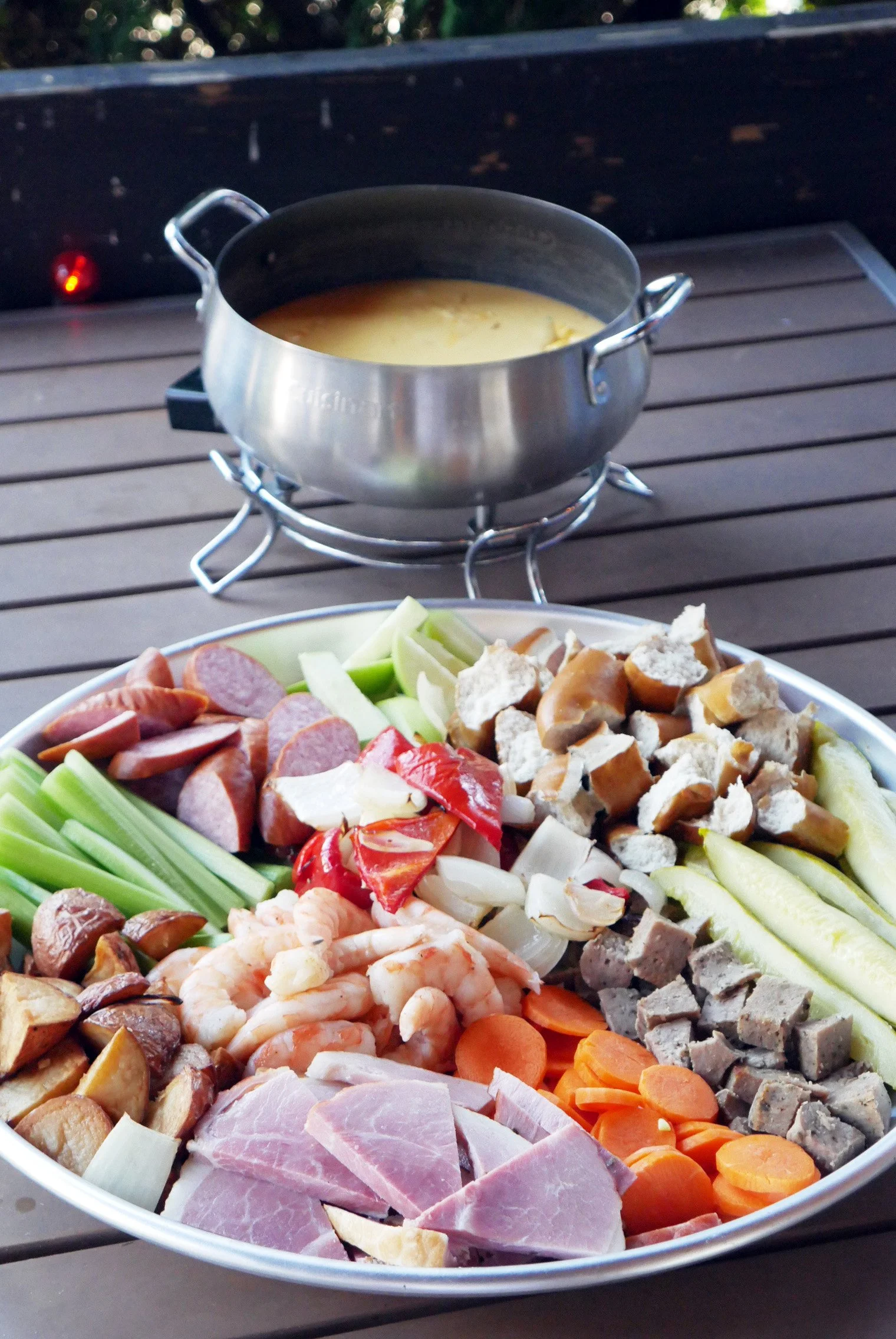 Cheese Sauce | Salami | Rosemary Ham | Smoked Sausage | Capicola | Smoked Cheddar | Boursin Cheese | Pepper Jack | Roasted Potatoes | Poached Shrimp | Veggies | Pickles | Raspberry Jam | Marinated Olives | Assorted Nut Mix | Toasted Bread | Pretzel Bites | Crackers | $145